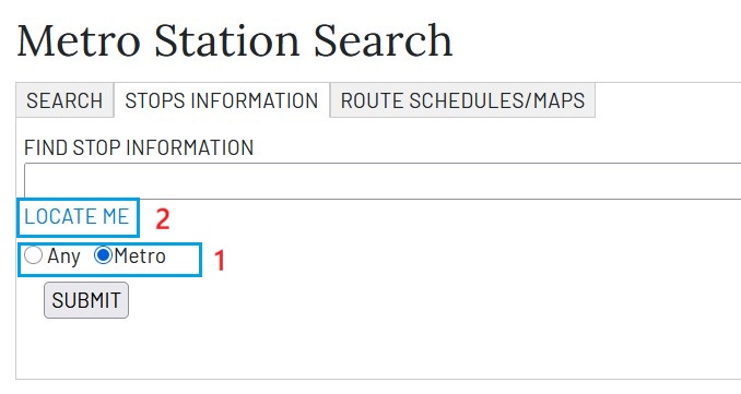 Select the metro station from the dropdown list & submit to see the metro station information.