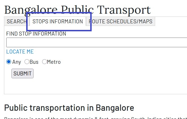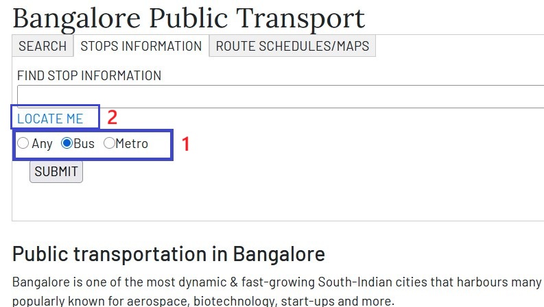 Find a BMTC station near you with this tool. This tool helps you find the nearest bus stop around you. Just follow the steps to find the nearest bus station and the information.