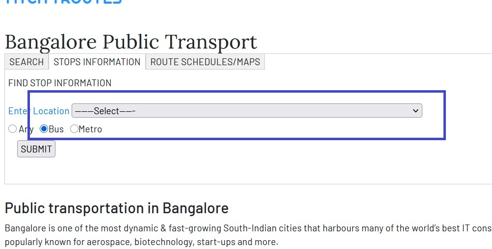 Select the stop from the dropdown list & submit to see the bus stop information.
