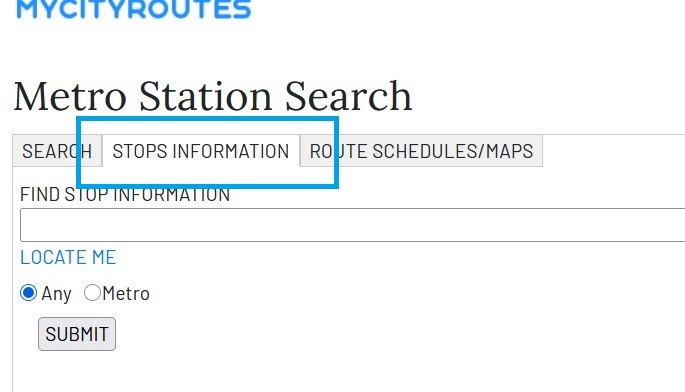 Select the metro station from the dropdown list & submit to see the metro station information.